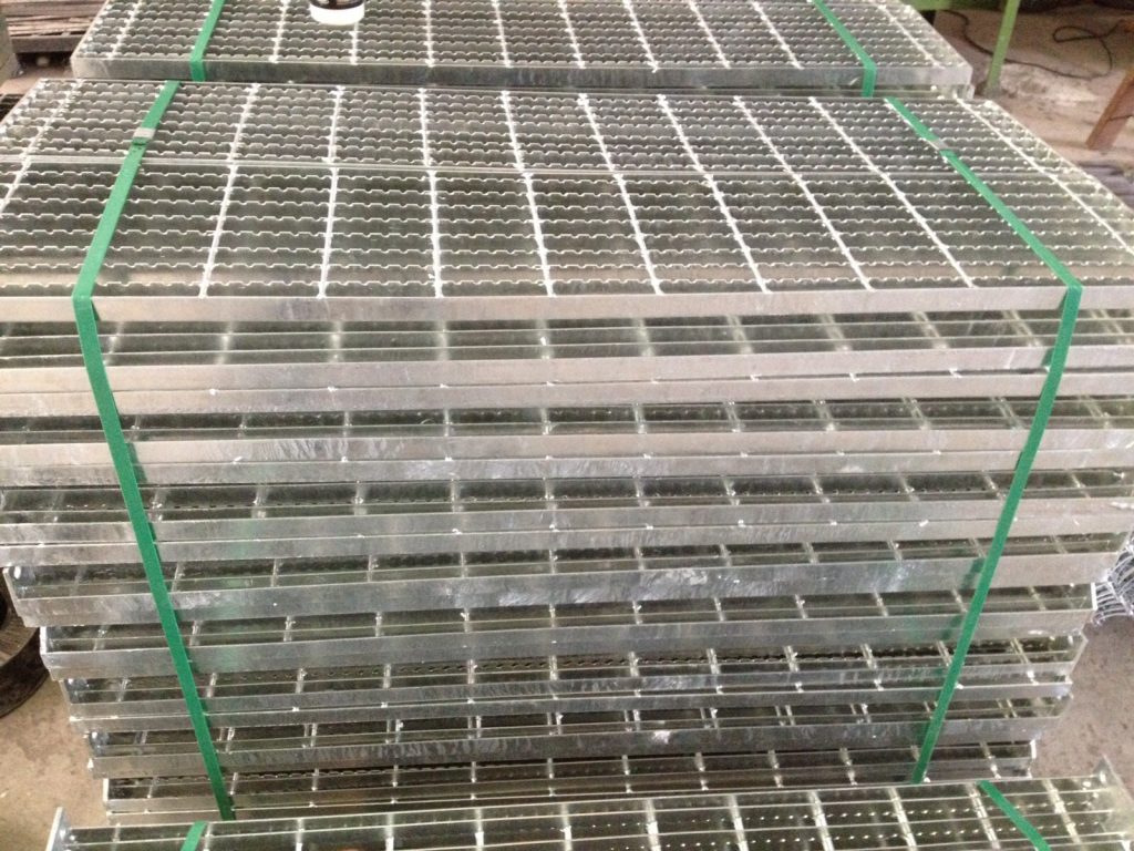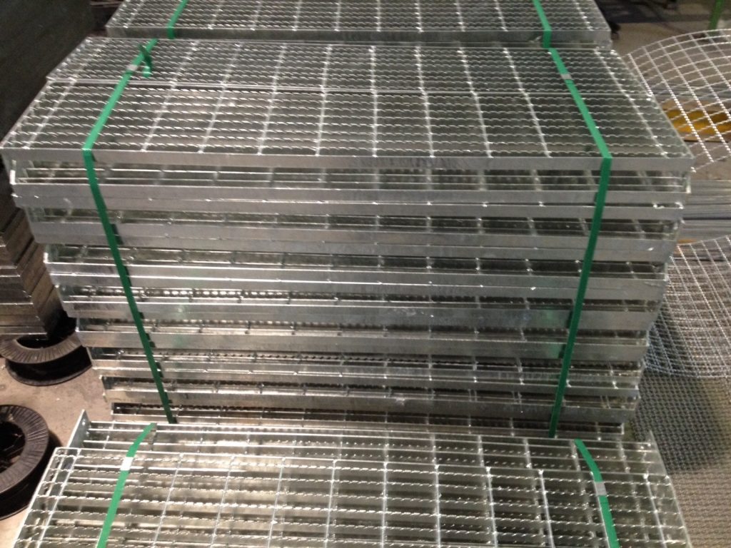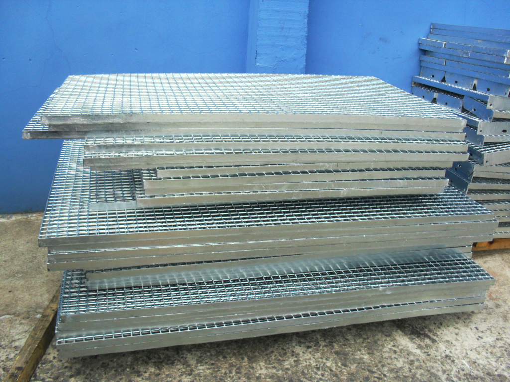 A grade de piso pode ser fabricada em aço carbono natural ou aço carbono galvanizado. Esse produto pode ter um acabamento em estado natural ou galvanizado a fogo, conforme norma americana ASTM-A-123 e brasileira NBR 6323 da ABNT. As estruturas das grades de piso da Stampmetal são compostas por barras portantes em barras chatas estampadas e travadas por barras secundárias em barras redondas ou barras chatas encaixadas e soldadas pelo processo MIG.
